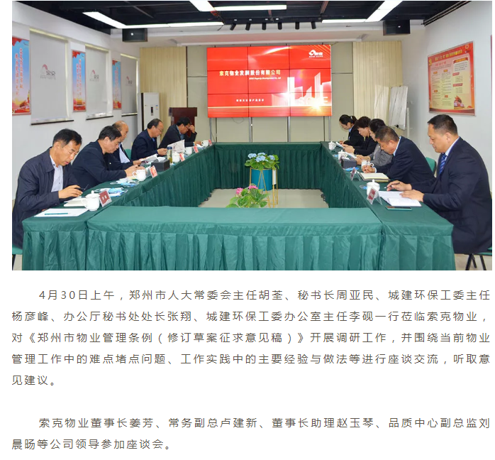 为立法建言献策 助物业健康发展——郑州市人大常委会莅临威廉希尔物业进行调研
