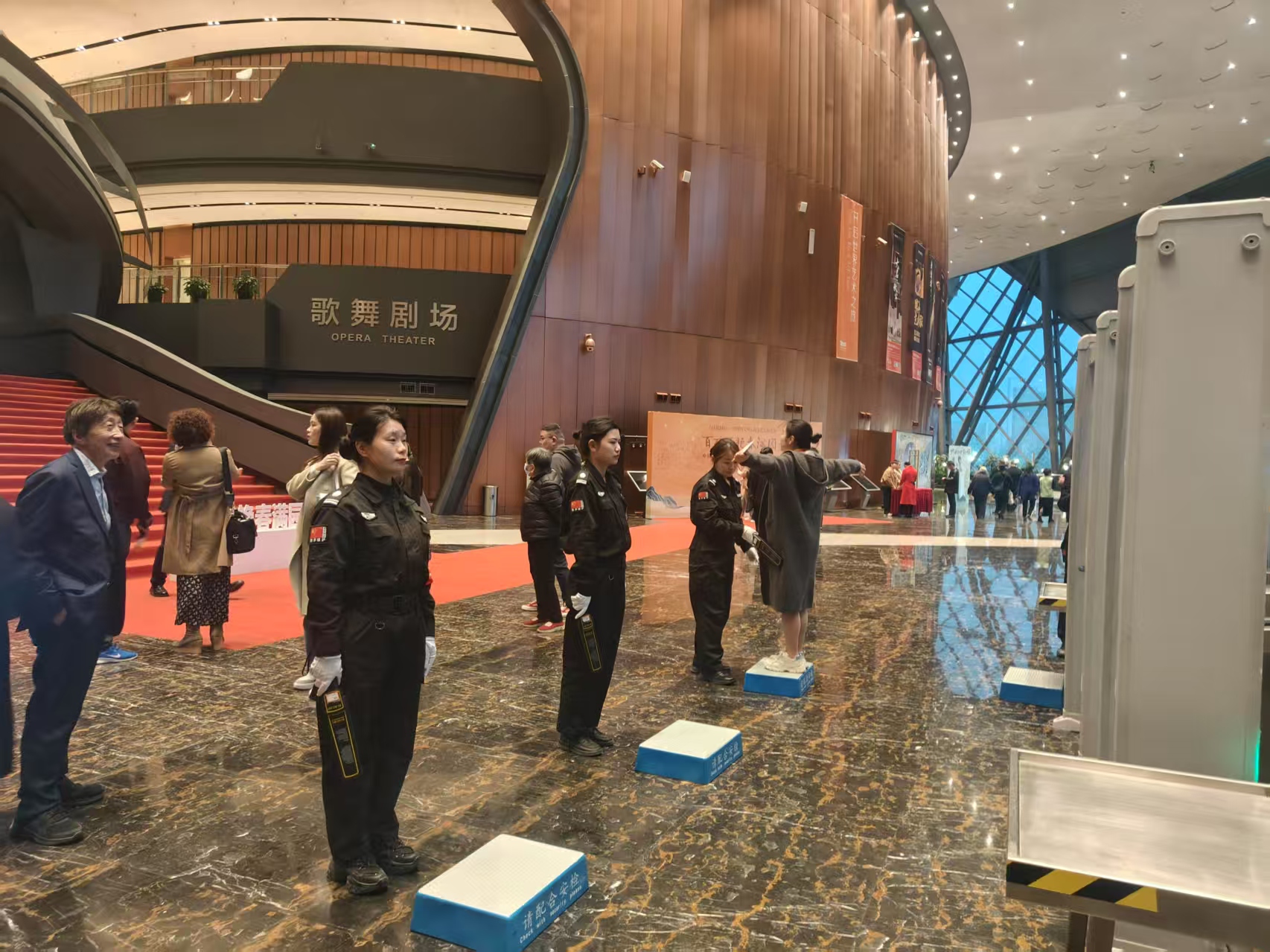 安全保障:筑牢防线,护航文化盛事。秩序组是剧院安全的忠诚守护者,他们提前对剧院各个通道及现场进行了严密的安全检查,不放过任何一个可能存在的安全隐患,从源头上防止安全事故的发生。秩序组以专业的安检设施和高度负责人的态度,对进入剧院的人员和物品进行细致入微的安全检查,严格禁止无证人员和违禁物品进入剧院。在观众进出环节,他们以专业的指引和高效的疏导,快速引导观众有序进入场馆,确保了现场秩序井然。