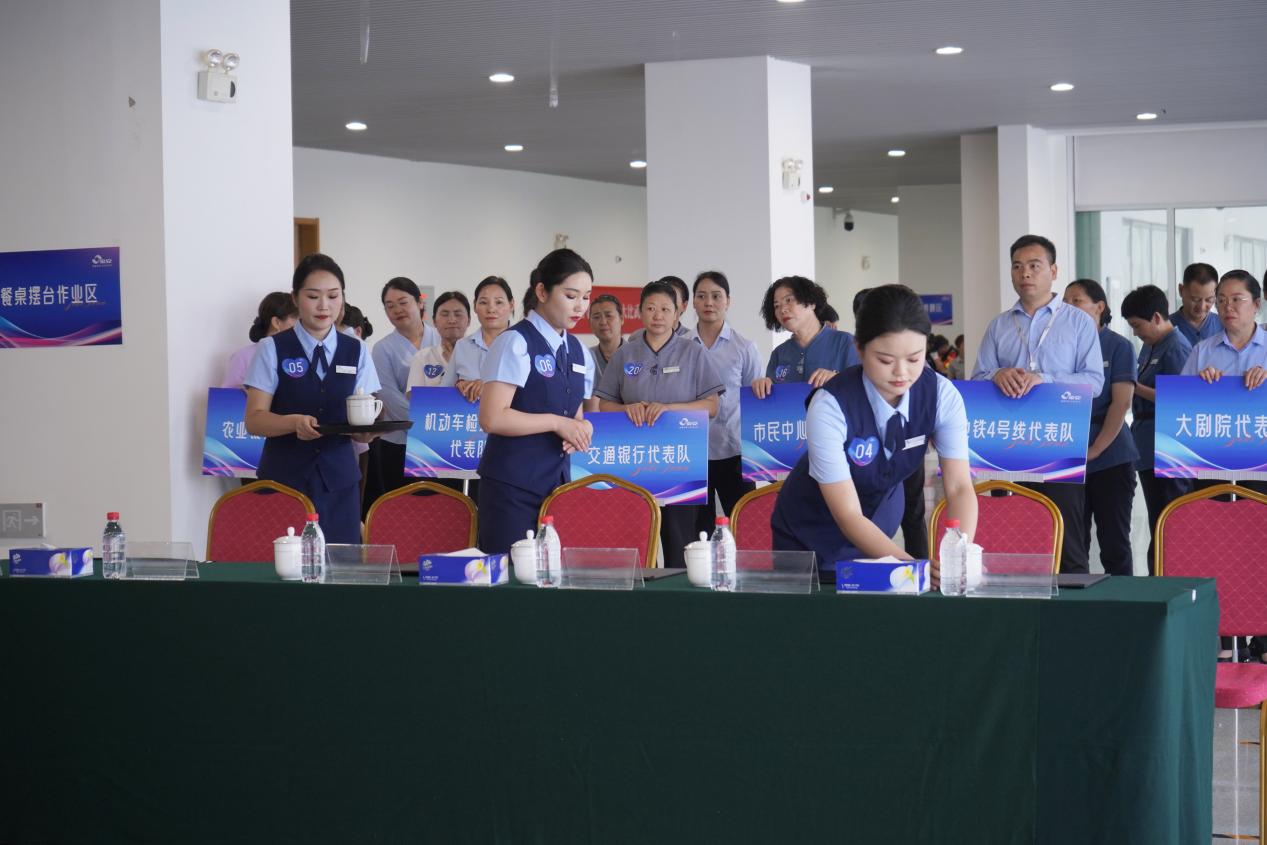 餐饮摆台:餐具摆放遵循严格标准,酒水服务流程规范,选手们用专业与热情,诠释着高品质的餐饮服务标准。